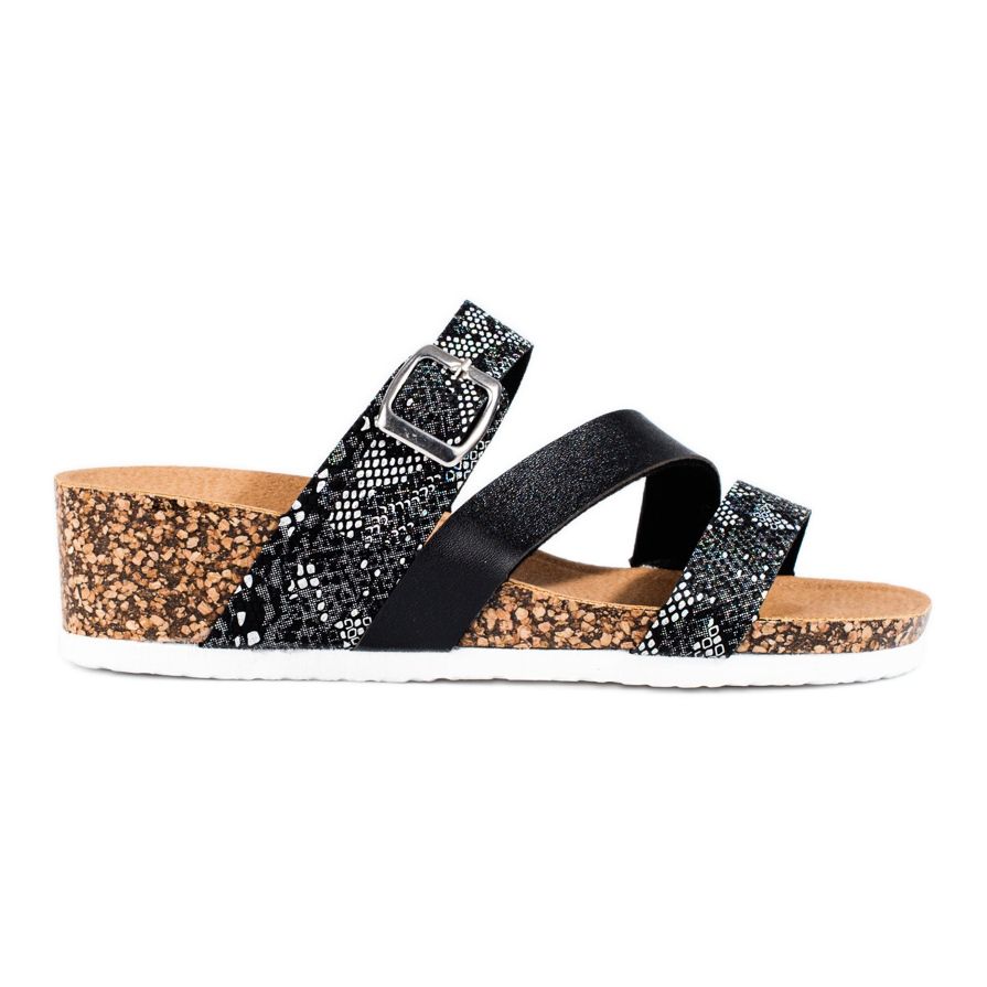 Eleganța și confortul pot merge mână în mână datorită papucilor cu pană joasă de la W. Potocka. Acest model impresionează prin designul său universal, atemporal, care se va potrivi cu ușurință în garderoba de zi cu zi a fiecărei femei. Șlapii de culoare neagră sunt o alegere excelentă pentru cei care apreciază stilul clasic cu o notă de modernitate.