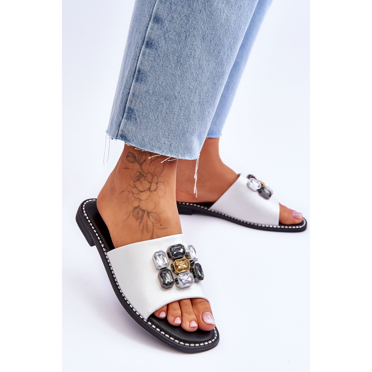 S.Barski Papuci de damă cu pietre S.Barski KV-2775-31 alb-argintiu