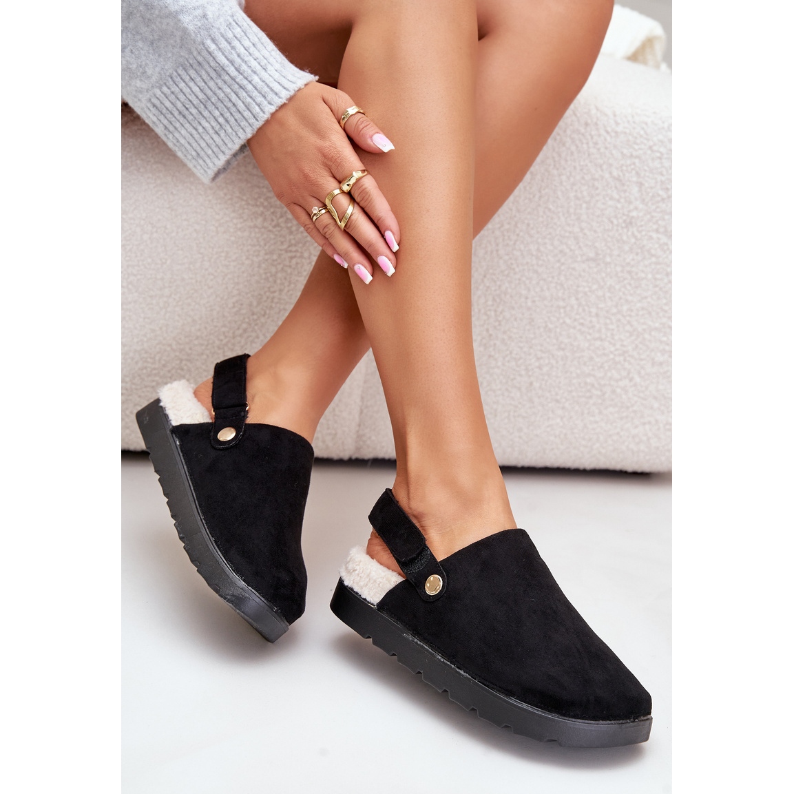 Vă prezentăm papuci pentru femei pe platforma izolată cu blană de miel într -o culoare neagră elegantă de la marca Sanilora! Aceste papuci elegante sunt alegerea perfectă pentru zilele reci, oferind nu numai căldură, ci și un confort unic de purtare. Fabricate din piele de căprioară Eco de înaltă calitate, aceste papuci sunt caracterizate printr -o blană de miel izolată moale, ceea ce face ca fiecare pași să fie mult mai plăcuți.