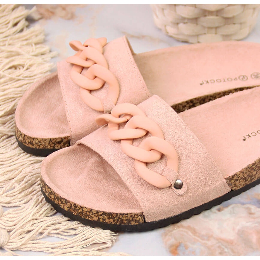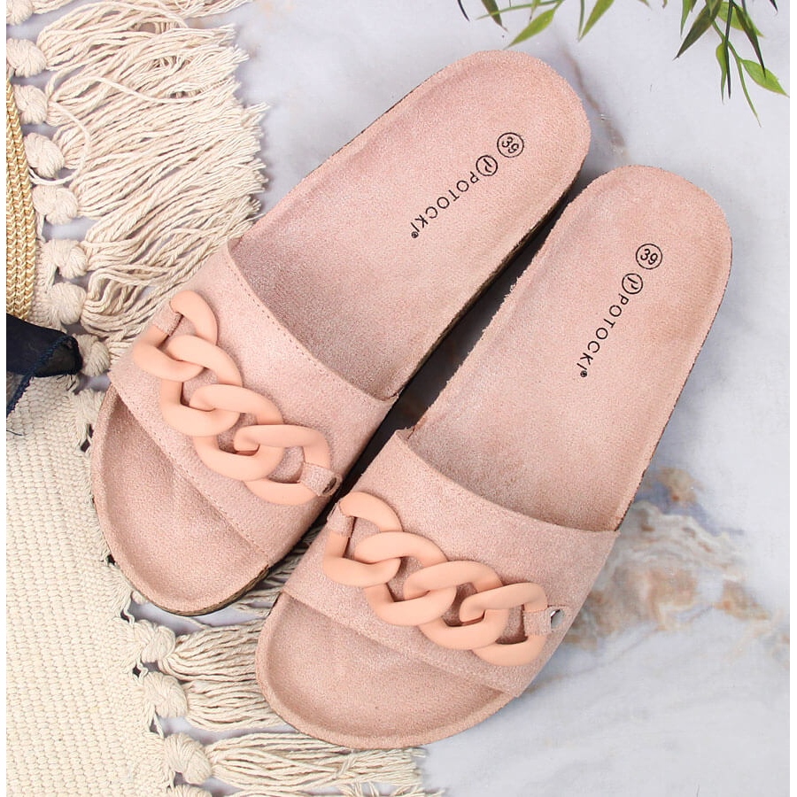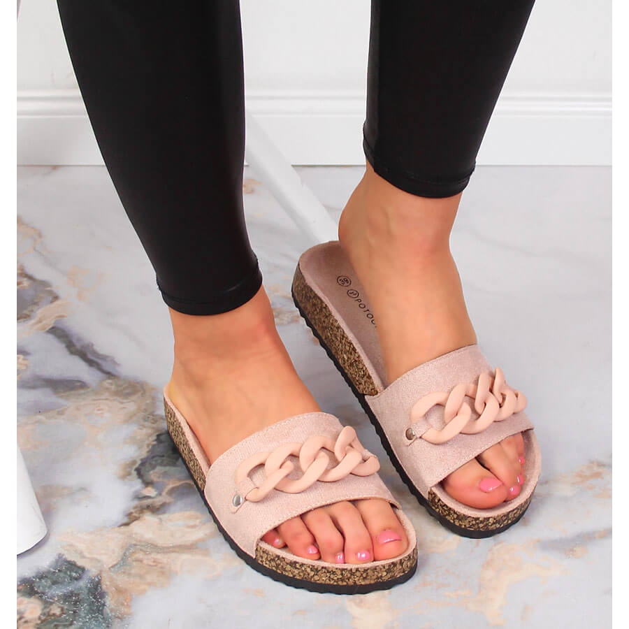 Detalii: Papuci de damă cu un lanț de Potocki roz pudrat