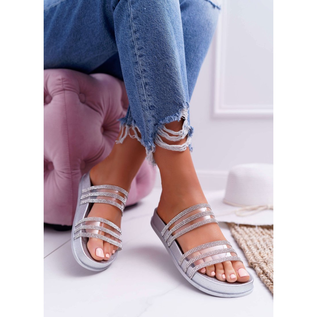 Detalii: Moow Papuci de Damă Cu Zirconiu Cubic Argintiu Larena gri
