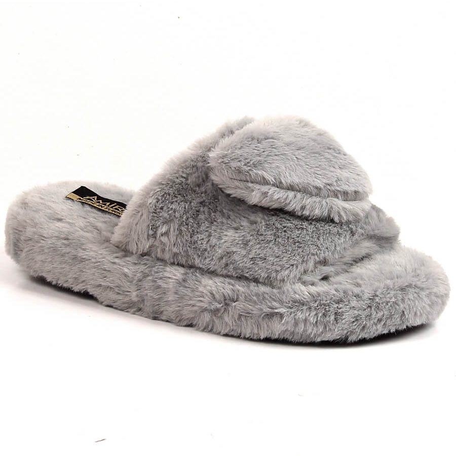 T.Sokolski Papuci de damă de pluș cu inimă, gri T.Sokolski