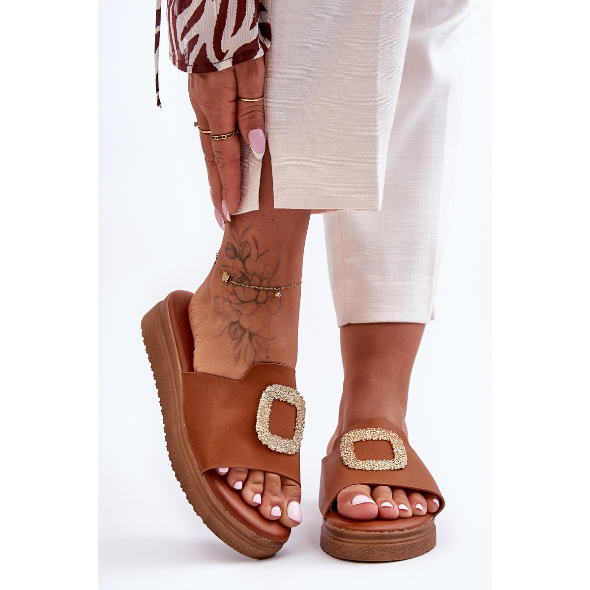 Descoperiți încălțămintea perfectă de vară care îmbină stilul cu confortul - toboganele de damă cu platformă Denicia într-o nuanță elegantă de maro. Fabricate din piele ecologică de înaltă calitate, acești șlapi clasici nu sunt doar estetici, ci și funcționali, subliniind orice stil de vară.