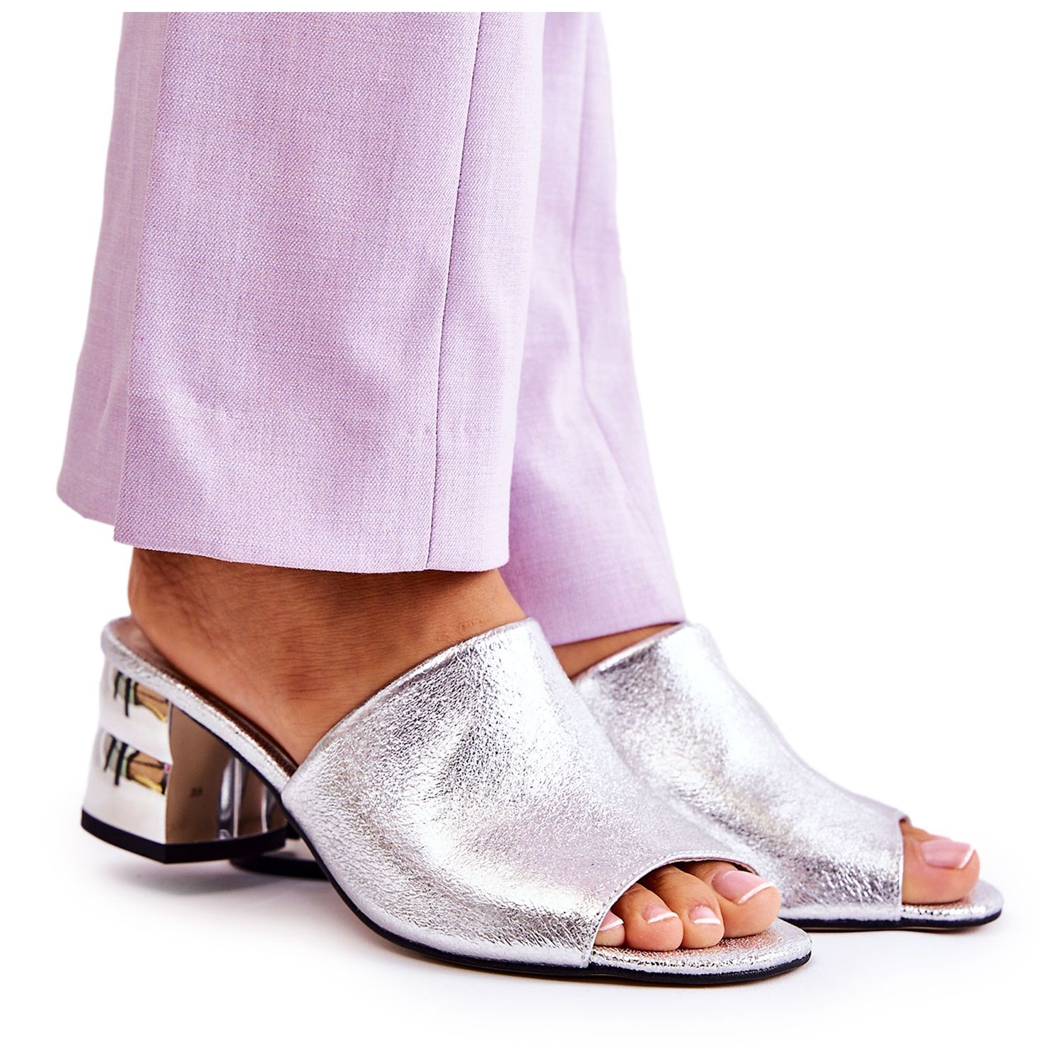 Detalii: PA2 Papuci de damă din piele cu toc înalt Silver Perry argint