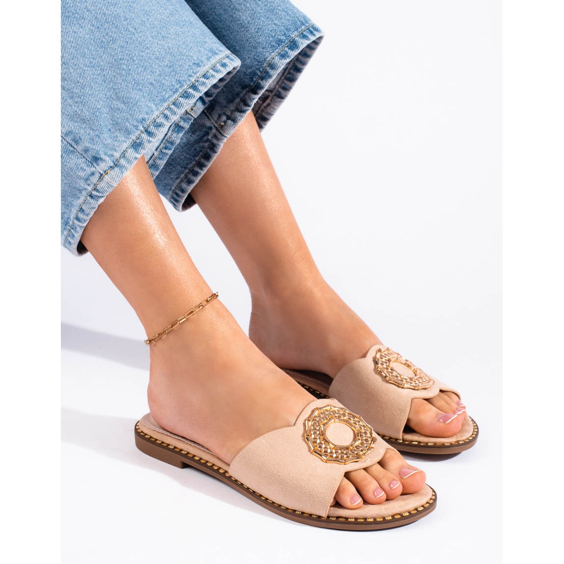 Detalii: Goodin Papuci de damă din piele intoarsa bej