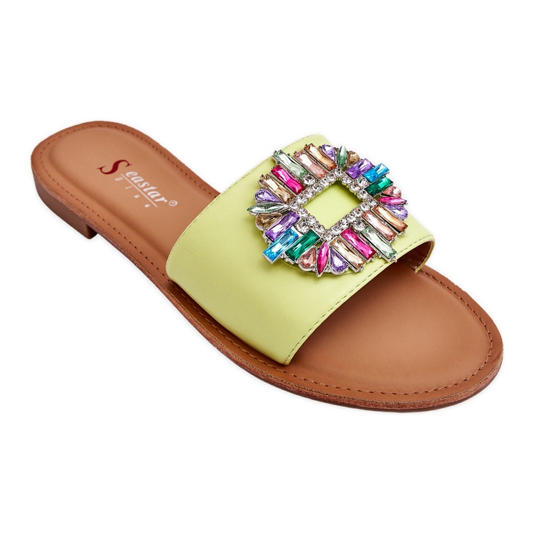 Detalii: Papuci de damă la modă, cu decor verde Halsey