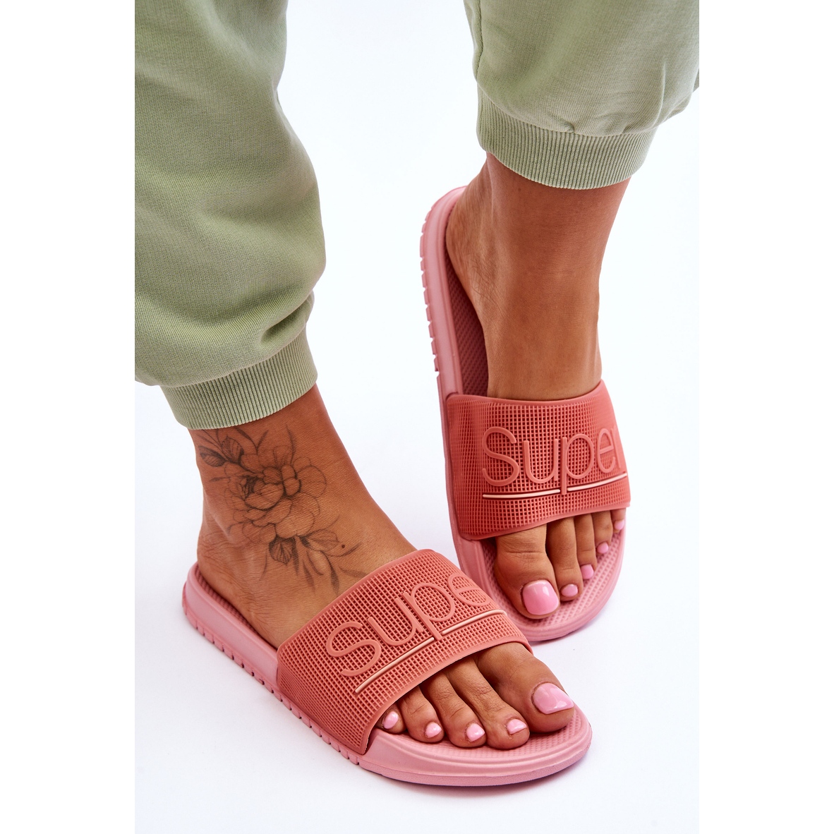Vă prezentăm Flip-flops de damă ușoare cu inscripție într-o culoare roz la modă – perfecte pentru zilele de vară! Acești șlapi extrem de confortabili combină stilul și funcționalitatea, ceea ce le face o alegere perfectă pentru orice ocazie.