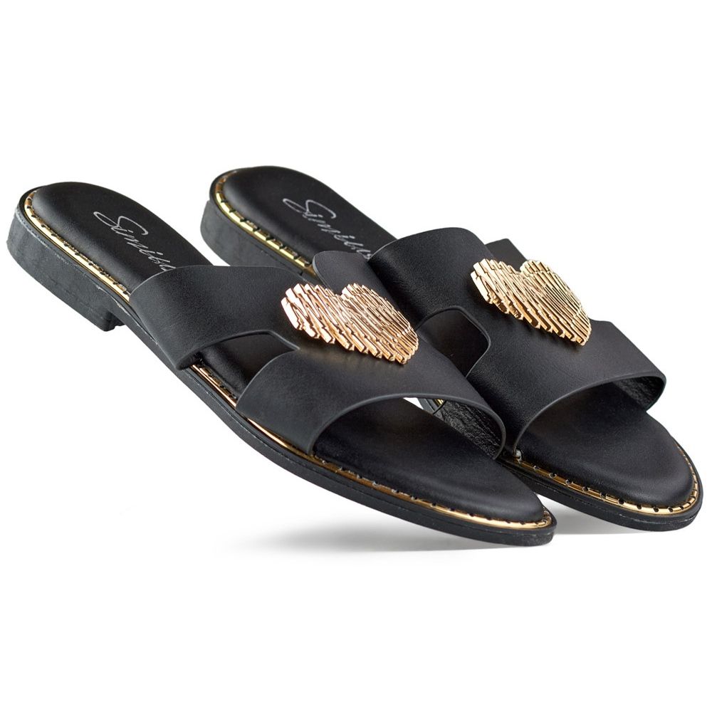 Detalii: Papuci de dama negre cu inima decorativa negru