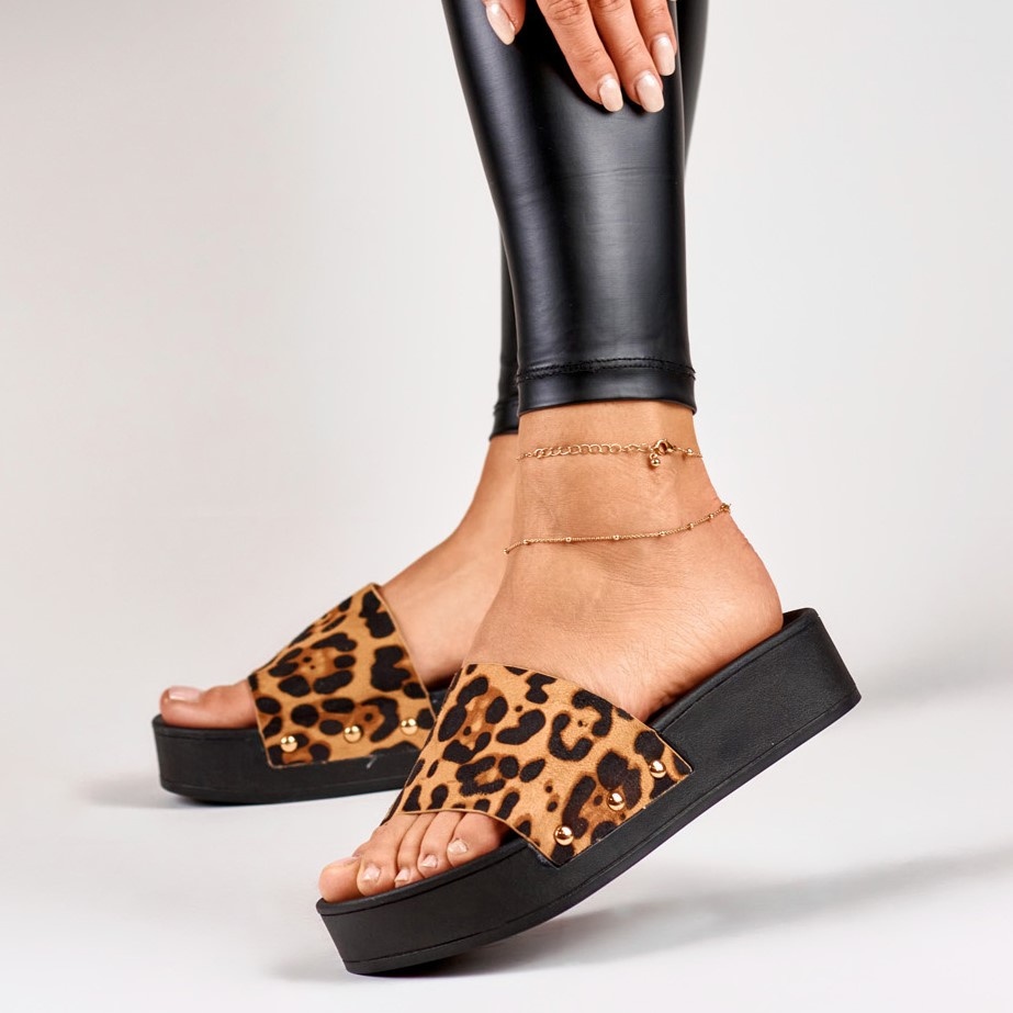 Descoperă-ți stilul cu șlapi de damă cu platformă cu model leopard la modă! Acești șlapi multicolori sunt o alegere perfectă pentru fiecare femeie care apreciază confortul și designul clasic.