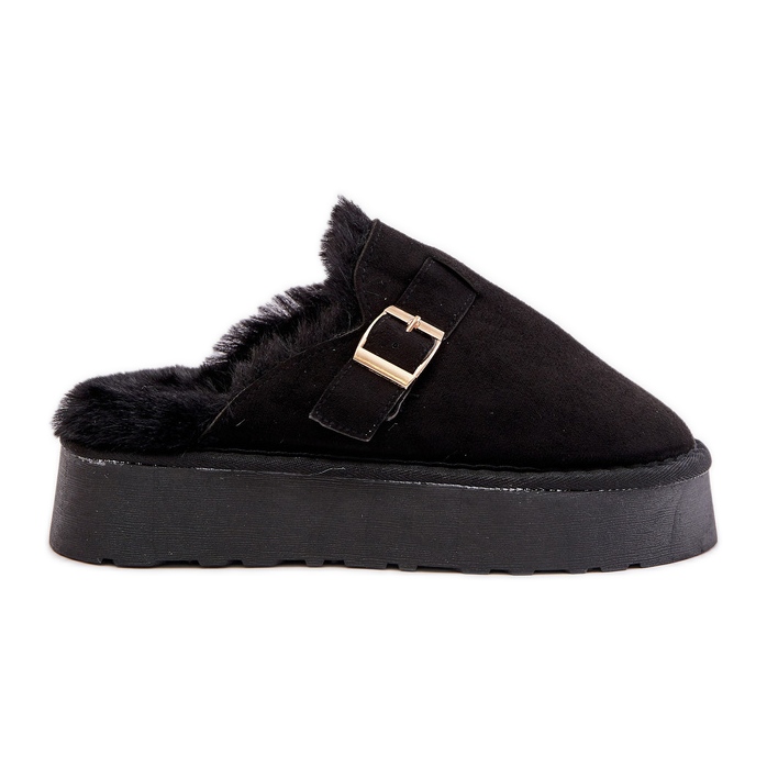 Detalii: Papuci de dama pe talpa groasa cu blana si catarama, Linneola Neagra negru