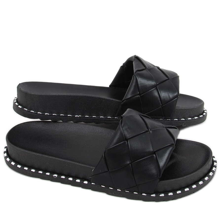 Pantofii de damă Sunny Black sunt alegerea perfectă pentru femeile care doresc să îmbine confortul cu cele mai noi tendințe. Acești șlapi eleganti de culoare neagră sunt confecționați din piele ecologică de înaltă calitate, ceea ce le face ecologice. Cureaua lată, împletită, le conferă un caracter unic, iar talpa înaltă la modă, decorată cu știfturi, le face un adevărat hit al sezonului.