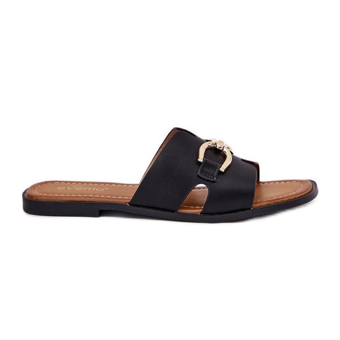 eVento EVento Papuci de femei plate cu un detaliu decorativ negru