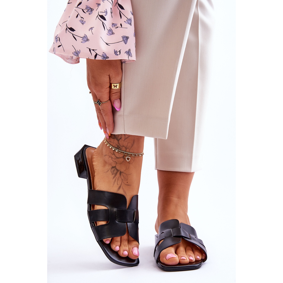 Acești șlapi, perfecti pentru zilele de vară, se caracterizează printr-un vârf pătrat, deschis, care le conferă un design la modă și actual. Decupaje în partea superioară nu numai că adaugă lejeritate și stil încălțămintei, dar facilitează și circulația aerului în jurul piciorului.