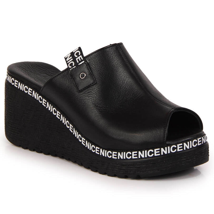 Detalii: Papuci de piele pentru femei pe pană neagră Artiker negru