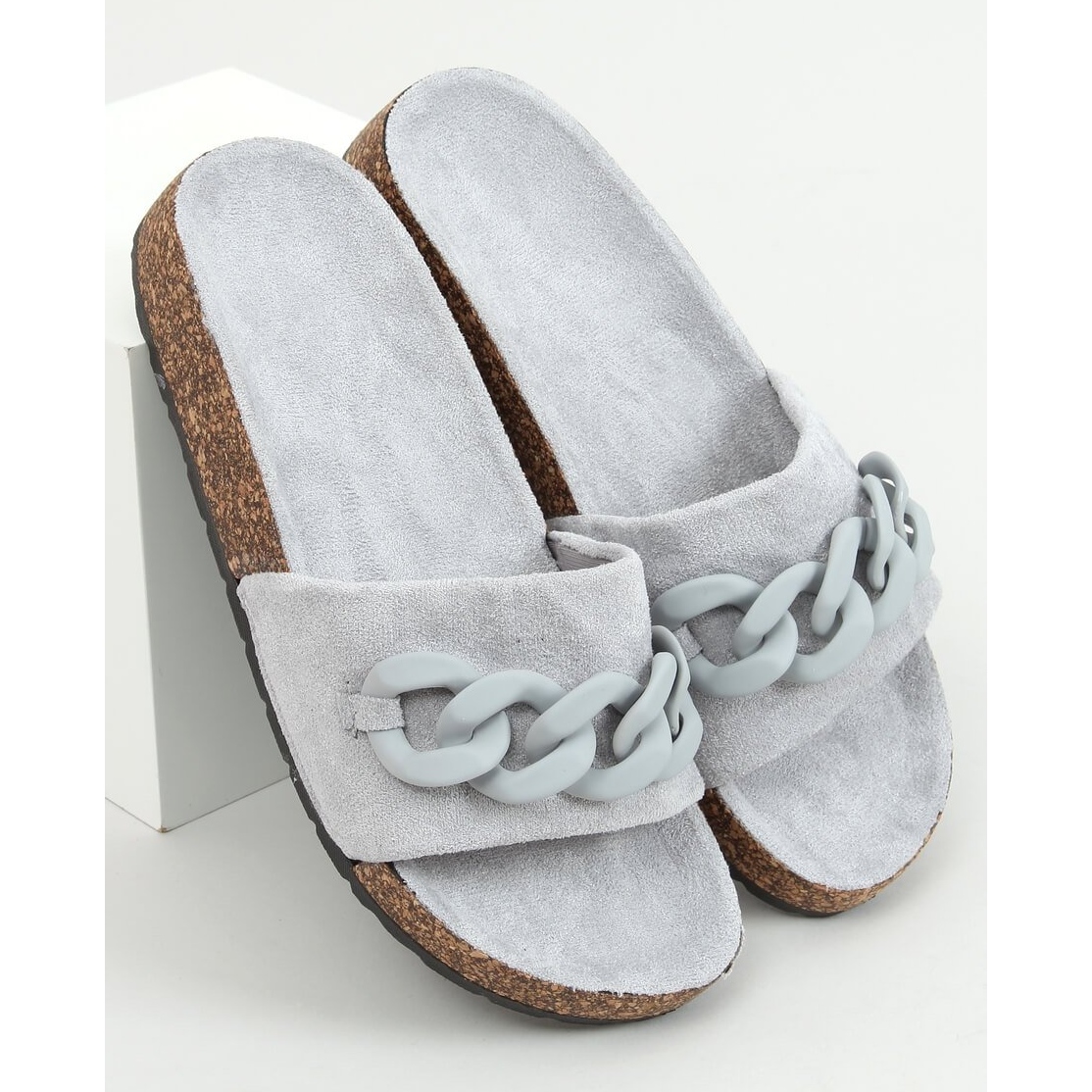 Descoperiți eleganța verii cu toboganele din plută Jarvis Grey cu un lanț în culoarea gri. Acești șlapi unici pentru damă, confecționați din piele de căprioară ecologică de înaltă calitate, îmbină stilul și confortul, perfect pentru utilizarea de zi cu zi. Cureaua largă și inserția interioară profilată oferă un confort extraordinar la fiecare pas, astfel încât să puteți călători liber pe distanțe lungi în ele.