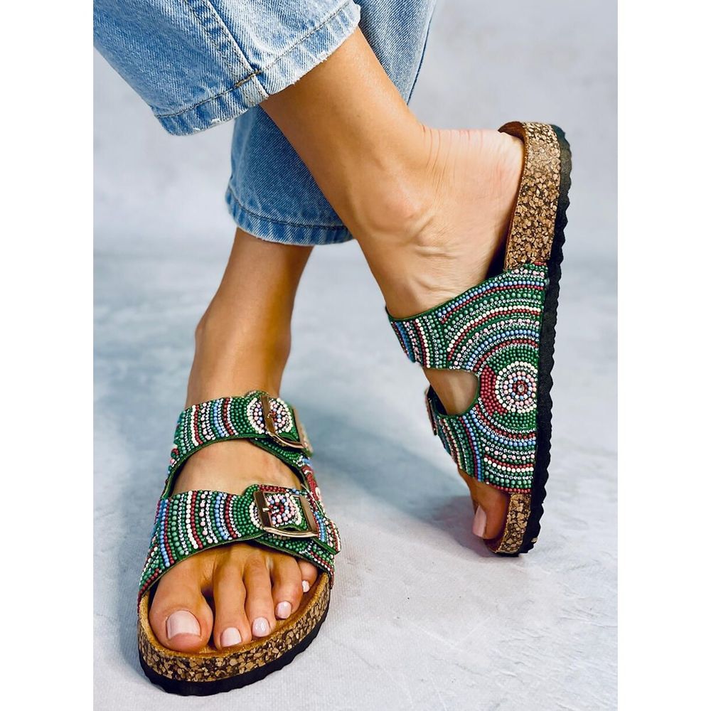 Seastar Seastar Papuci de pluta cu margele de la Adaora Green verde