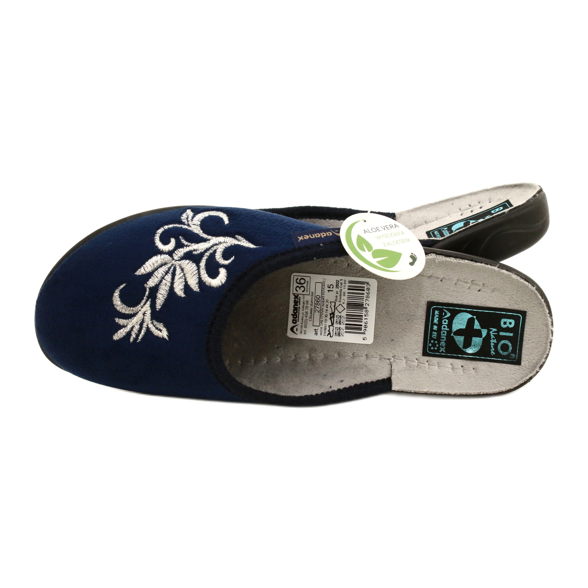 Materialul tălpii din PU asigură aderență și durabilitate adecvate, iar culoarea neagră a tălpii contrastează perfect cu fața bleumarin. Produși de renumitul brand Adanex, acești papuci combină calitatea înaltă, confortul și designul modern. Perfecte pentru relaxare acasă, sunt complementul perfect pentru orice stil de casă. Alege papucii Adanex 27860 si bucura-te de un confort exceptional in fiecare zi!