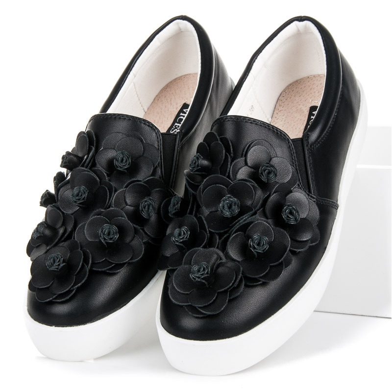 Descoperiți eleganța și confortul unic cu slip-urile negre Vices, care cu siguranță vor deveni un element indispensabil al garderobei dumneavoastră. Acești pantofi atrăgătoare se potrivesc perfect cu o varietate de stiluri, atât de zi cu zi, cât și mai elegante. Decorațiunile lor delicate sub formă de flori originale, mici, le conferă un farmec subtil, distingându-le de alte modele.