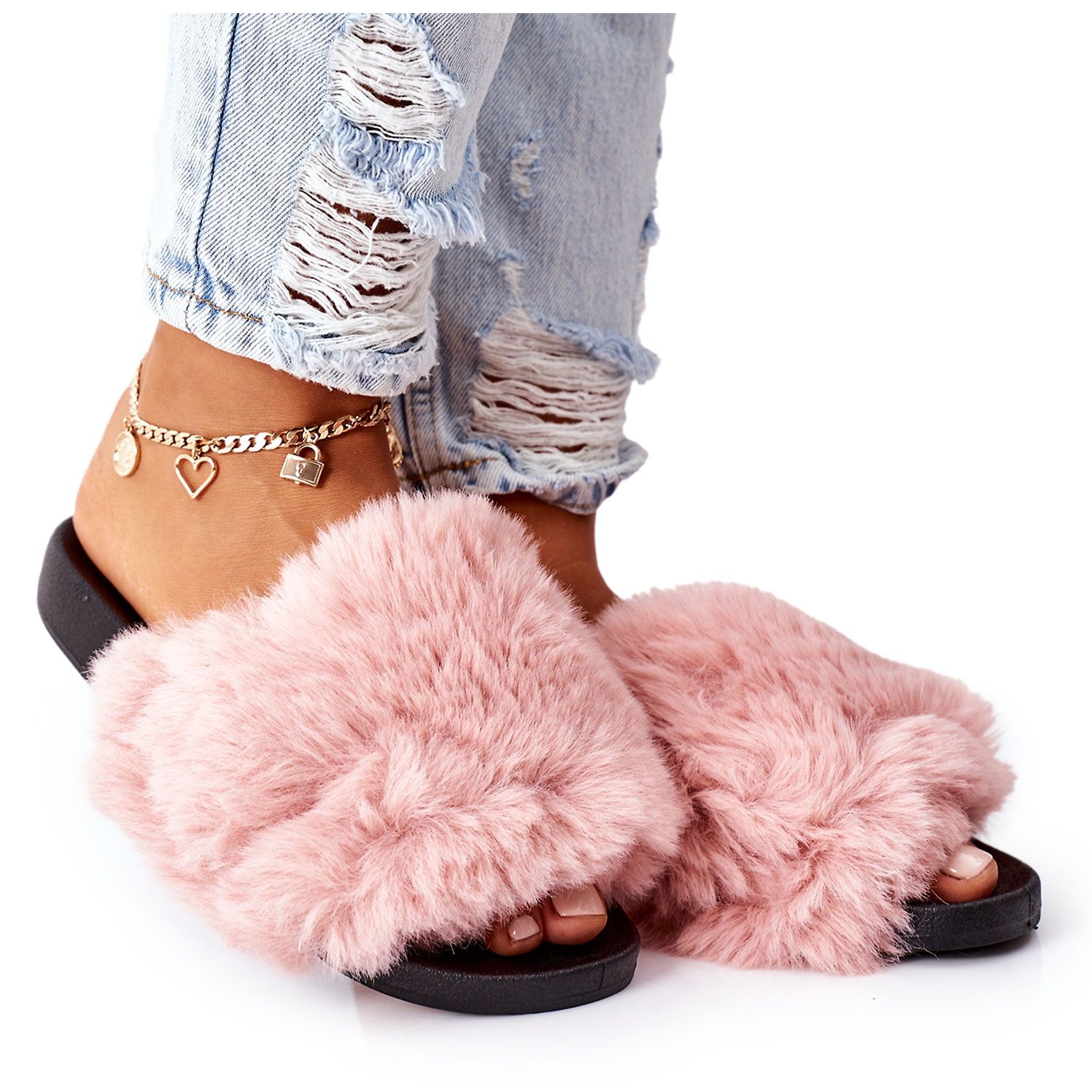 **Șlapi FJ1 din cauciuc cu blană roz moale**