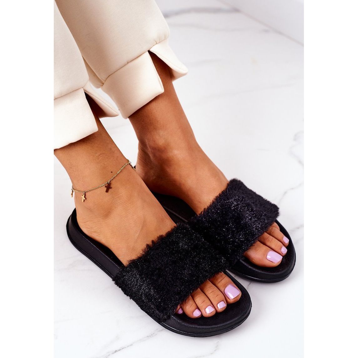 Detalii: PE1 Papuci din cauciuc cu blană negru negru