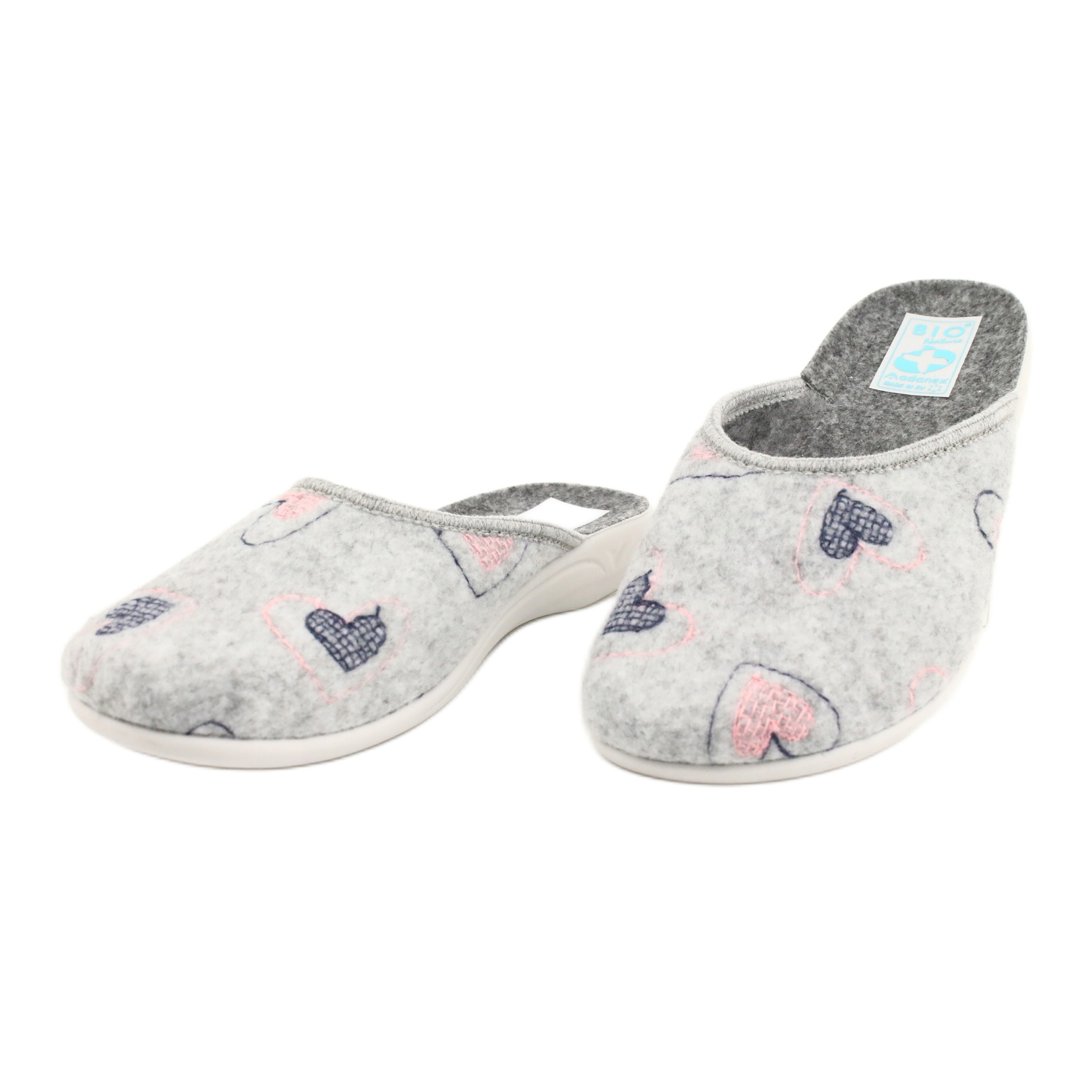 Detalii: Papuci din pâslă gri inimi Adanex 19255 gri roz