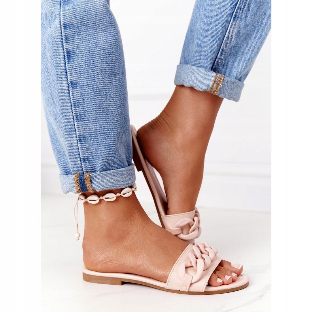 Detalii: PS1 Papuci din piele cu un lanț bej pas cu pas