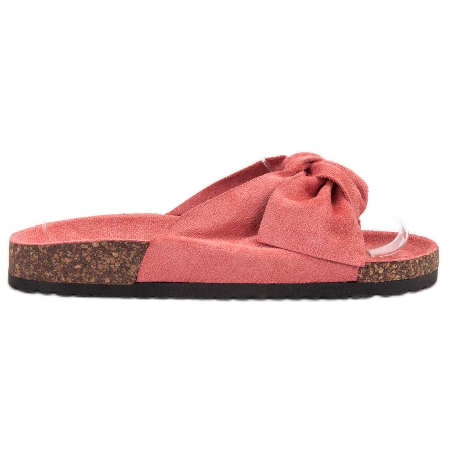 Bona Bona Papuci din piele de căprioară cu arc roșu