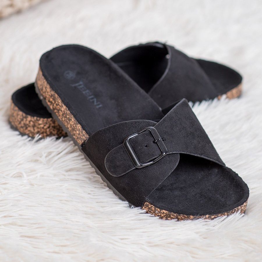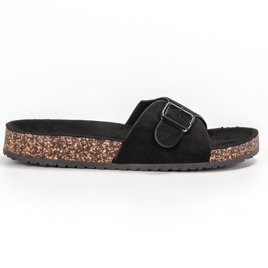 SHELOVET SHELOVET Papuci din piele de căprioară cu cataramă negru