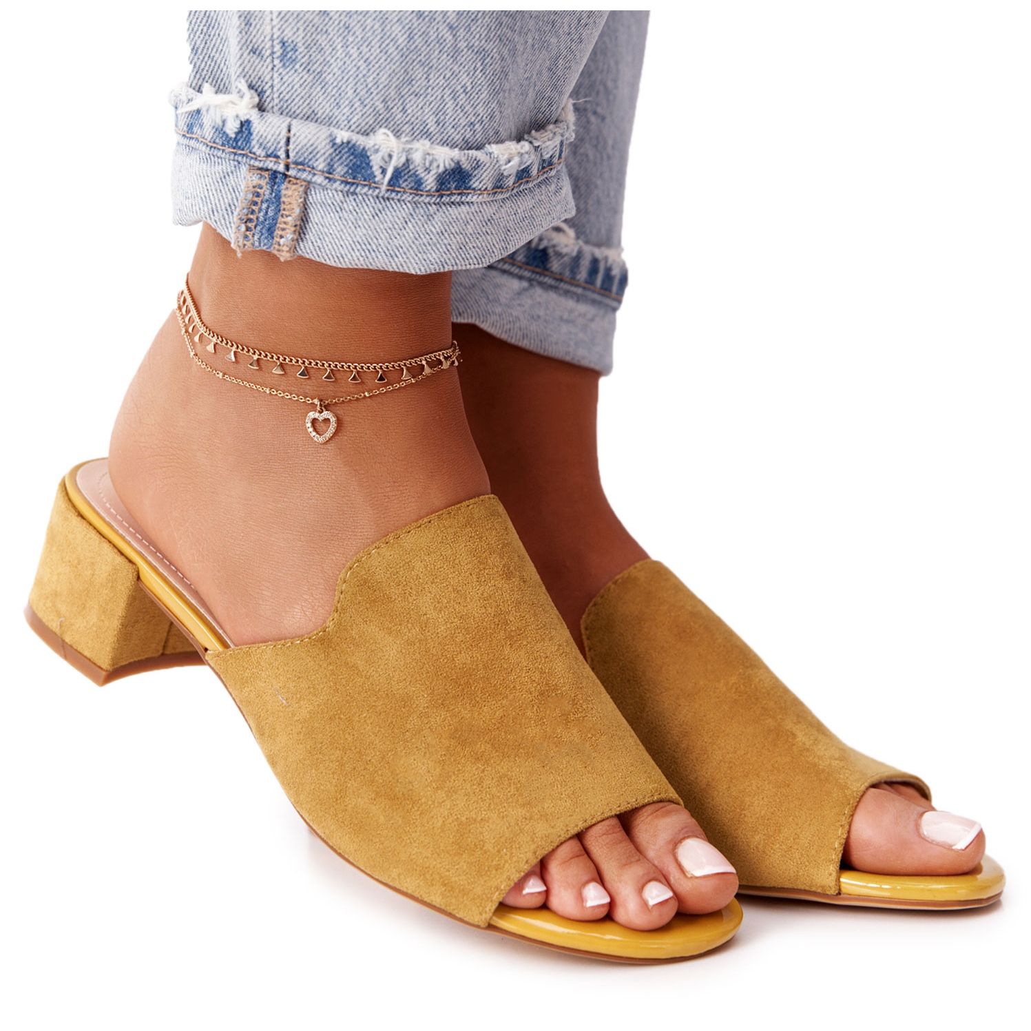 Detalii: Papuci din piele de căprioară pe toc Sergio Leone KL313 Galben