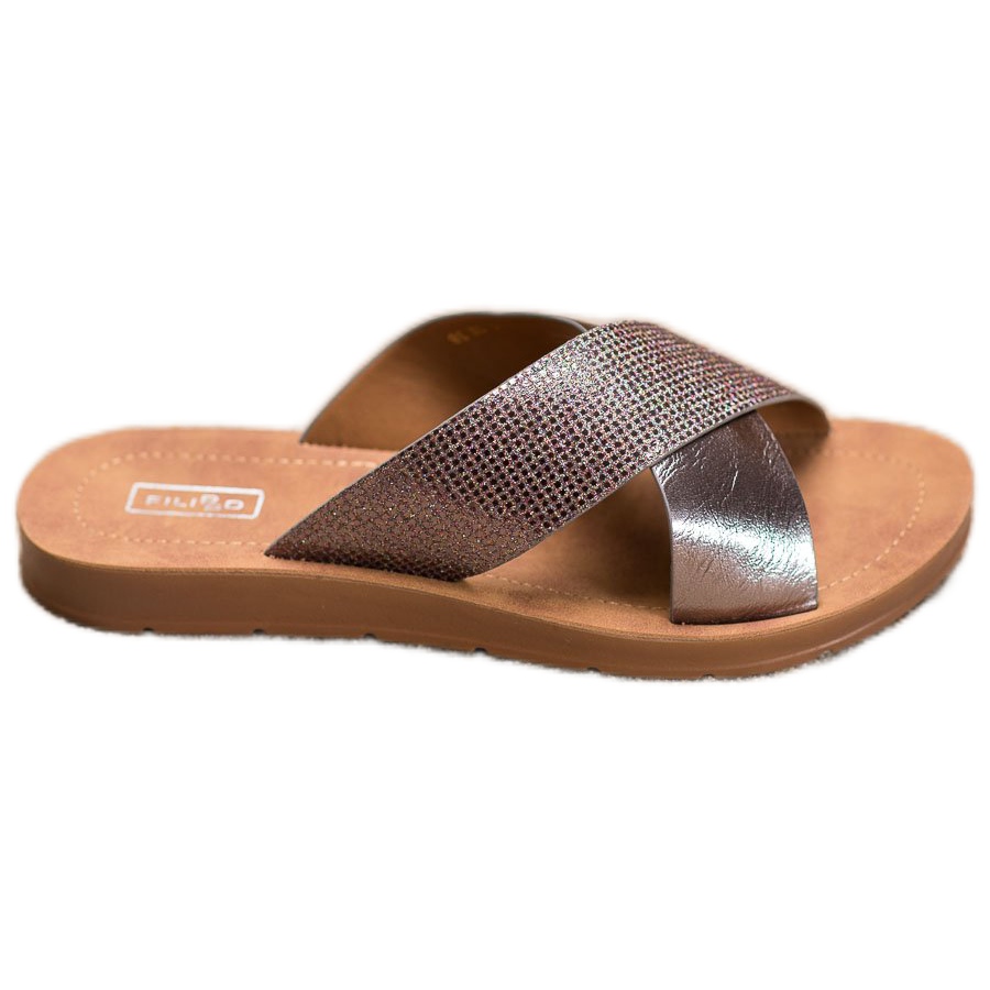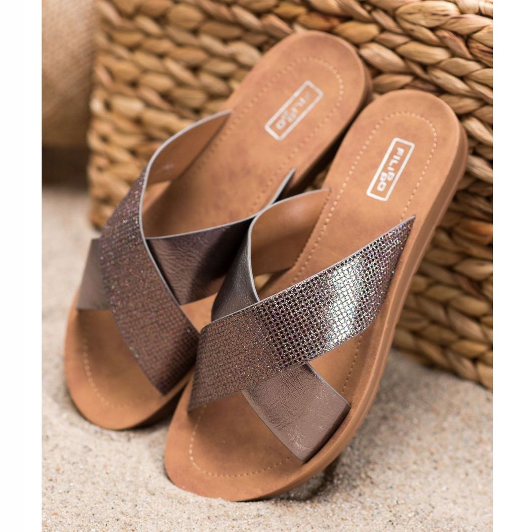 Descoperiți confortul și stilul la modă cu șlapi Filippo Shiny Eco Leather într-o culoare gri elegantă! Acești șlapi unici de damă, din piele ecologică 100%, sunt o alegere perfectă pentru zilele de primăvară și vară.