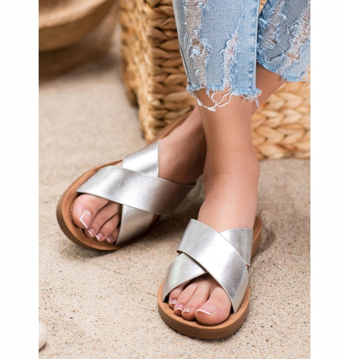 Flip-flops din piele ecologică gri strălucitoare Filippo sunt un must-have în garderoba de vară a oricărei femei. Acești șlapi eleganți, din piele 100% ecologică, îmbină designul la modă și confortul, ceea ce le face perfecte pentru ieșirile de zi cu zi, atât la plimbare, cât și la magazin.