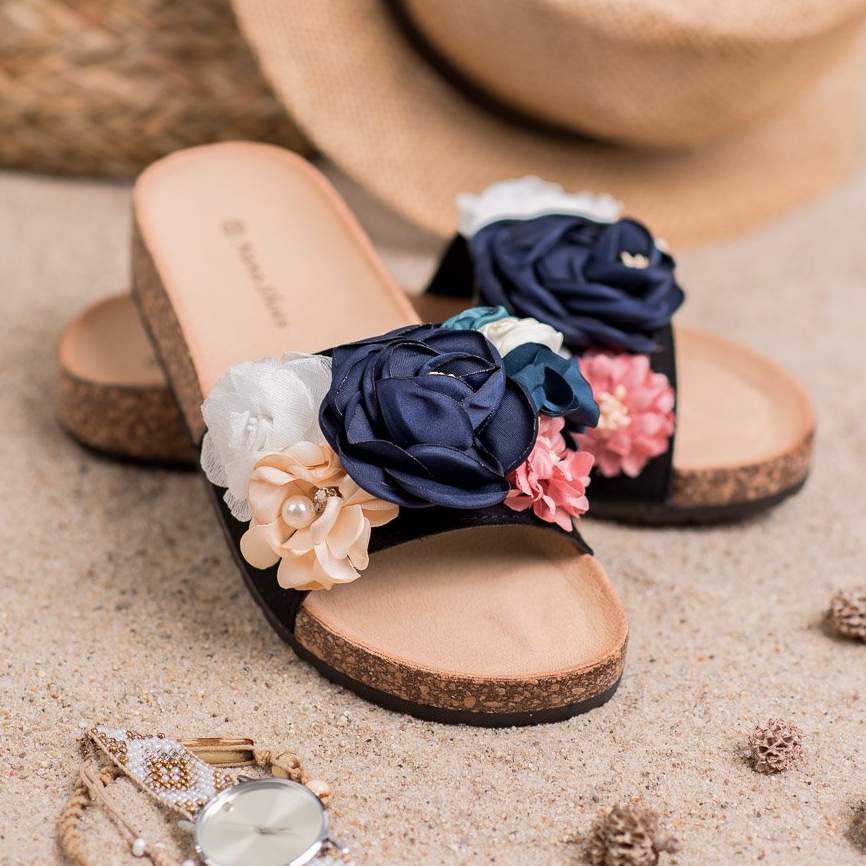 SHELOVET SHELOVET Papuci din piele intoarsa cu flori negru