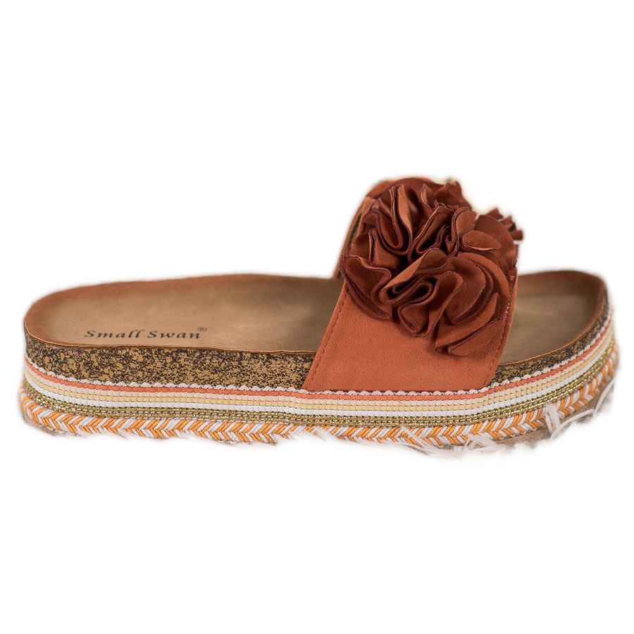 Detalii: Small Swan Papuci din piele intoarsa cu ornamente multicolor portocale