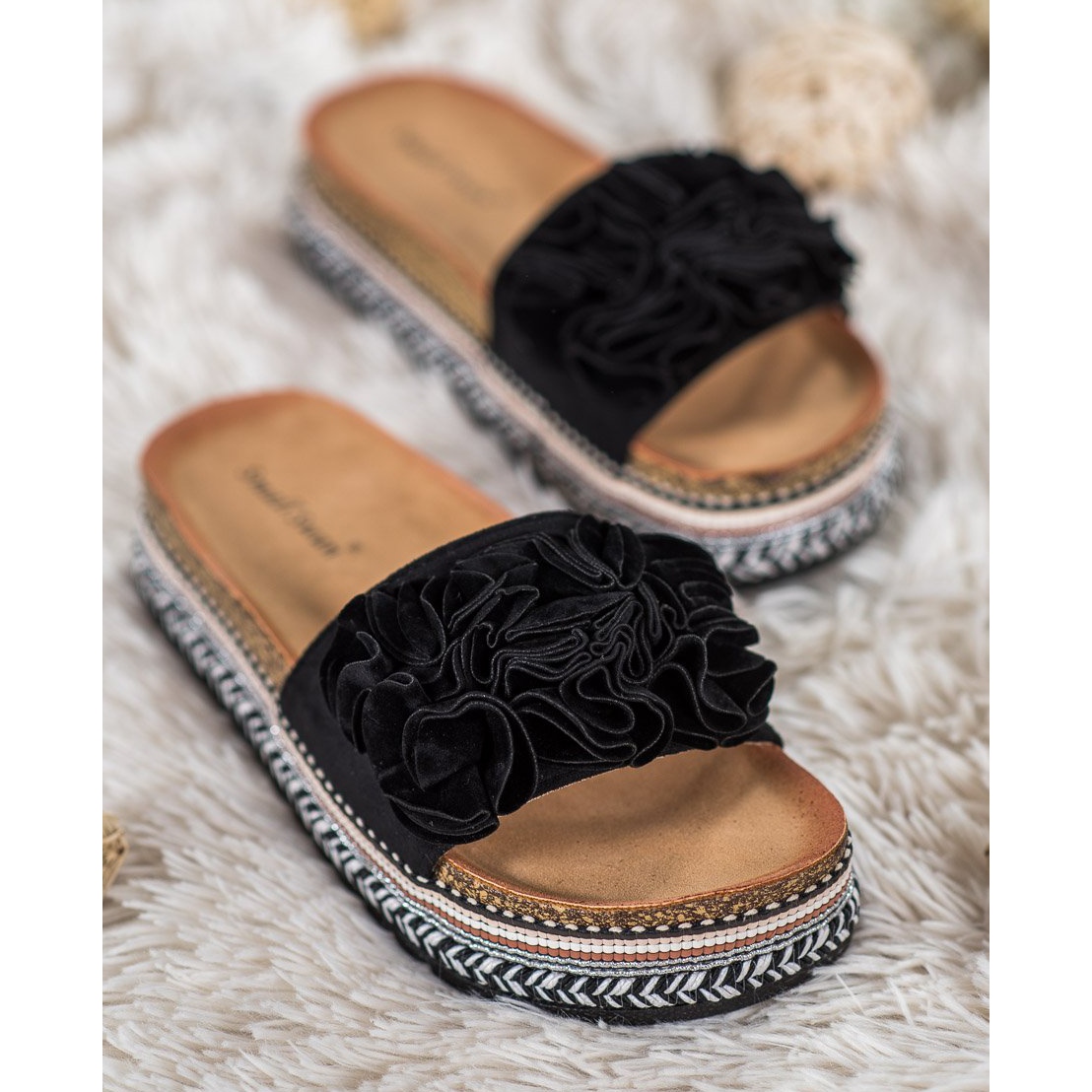 Detalii: Small Swan Papuci din piele intoarsa cu ornamente negru