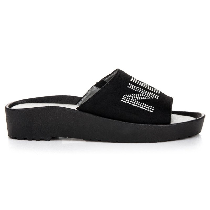 Slapii VINCEZA din piele intoarsa neagra sunt o alegere perfecta pentru zilele de vara, care combina designul la moda si confortul la purtare. Confectionati din piele intoarsa ecologica de inalta calitate, acesti slapi au un aspect original care cu siguranta va atrage atentia.