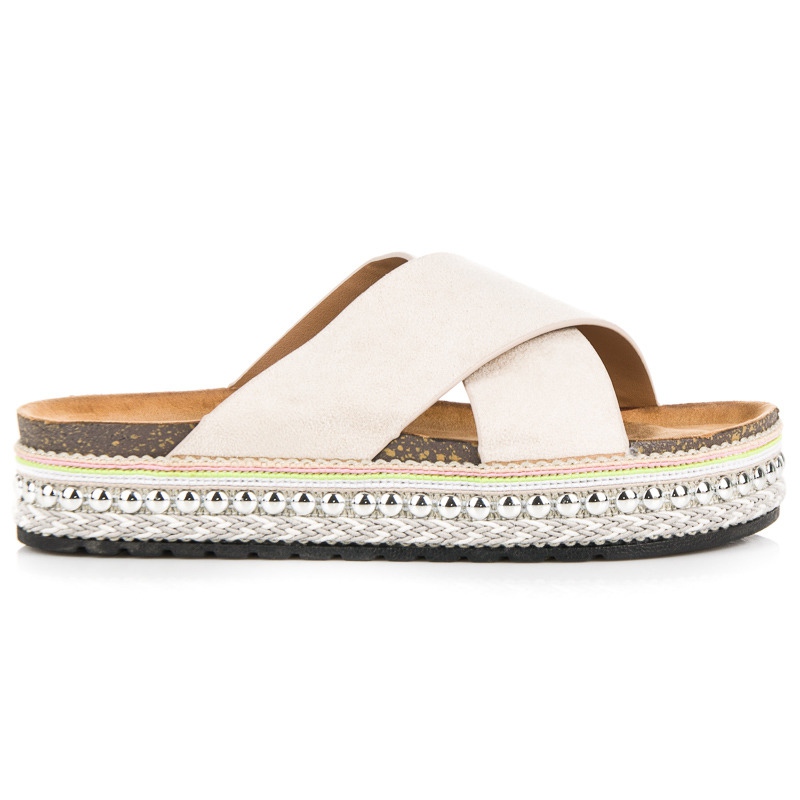 Aceste diapozitive din piele intoarsa au un design minimalist, ceea ce le face universale si usor de combinat cu diverse tinute. În plus, înălțimea platformei de 3 cm asigură confortul la purtare toată ziua și în același timp ridică ușor silueta.