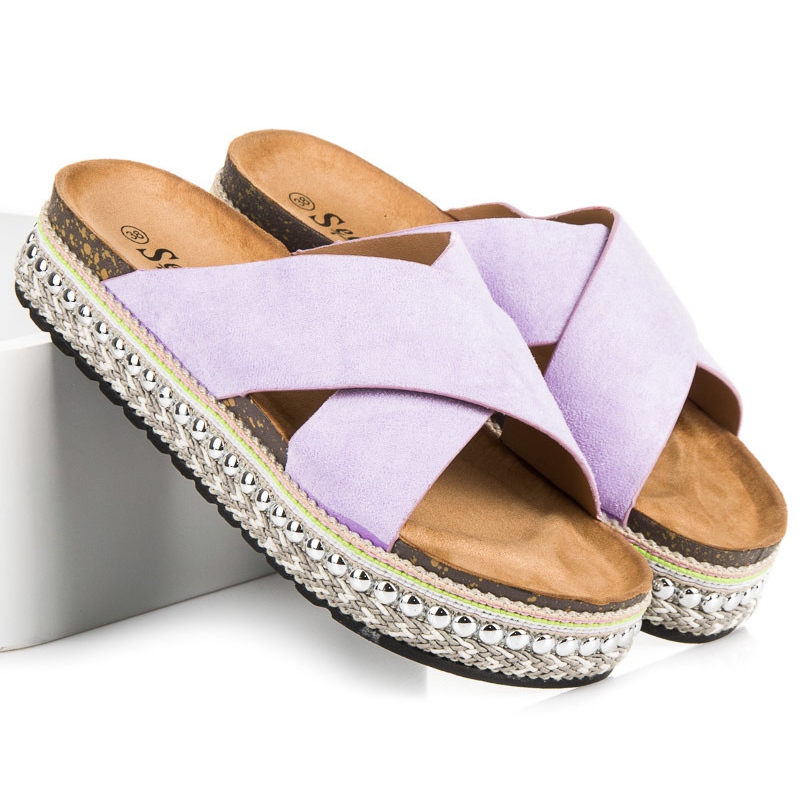 Seastar Seastar Papuci din piele intoarsa pe platforma violet