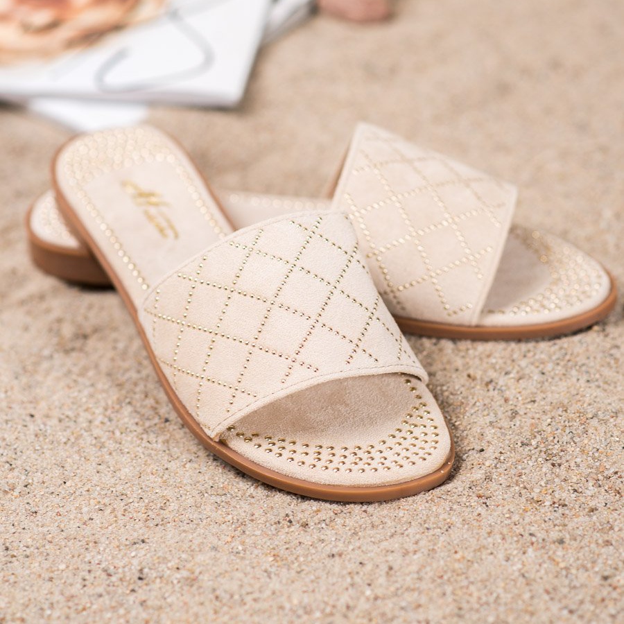 Flip-flops SHELOVET sunt un model slip-on cu toc plat care asigură confort în timpul utilizării pe tot parcursul zilei. Interiorul șlapilor este căptușit cu material textil, ceea ce le sporește și mai mult confortul. Disponibili în culoarea maro, acești pantofi se vor potrivi armonios în orice garderobă de vară, adăugându-i șic și eleganță.