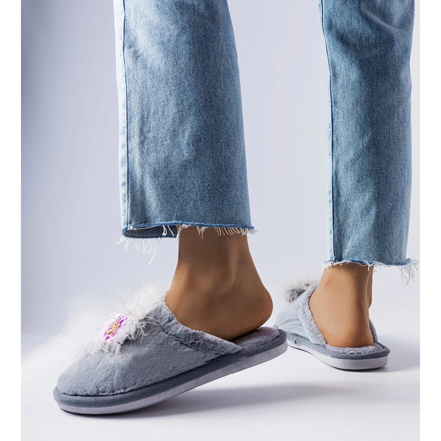 Papuci de papuci gri cu o cutie florală - caldă, confortabilă și elegantă. Blana moale din interior vă menține picioarele la o temperatură plăcută, iar modelul floral fermecător, multi -colorat adaugă farmec clasic seturilor de zi cu zi. Perfect pentru diminețile și serile răcoroase, când confortul este cel mai important.
