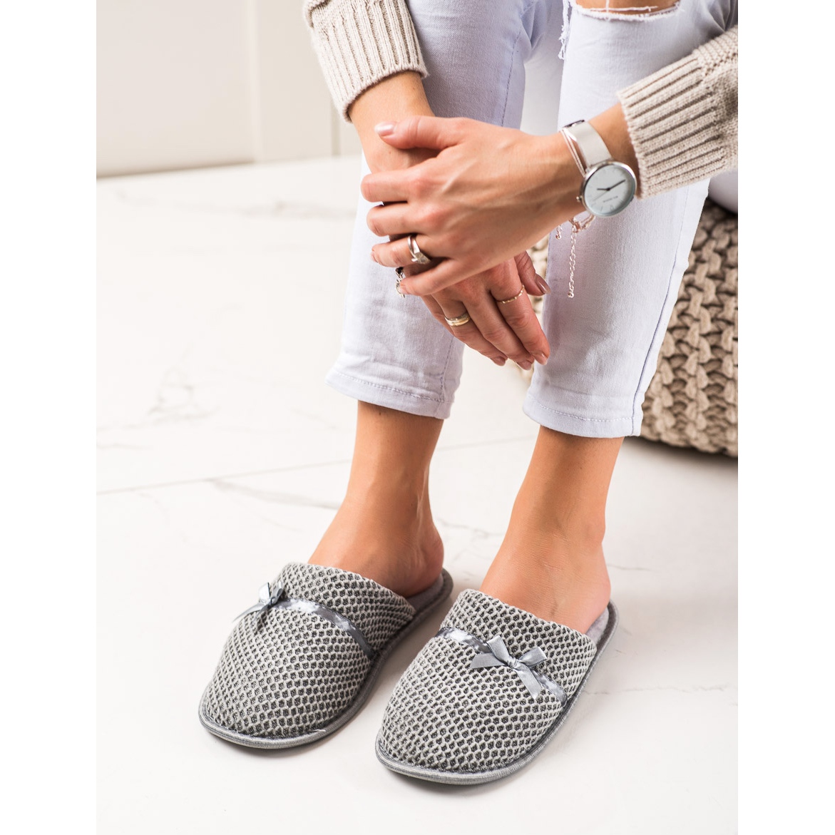Detalii: TRENDI Papuci Gri Cu Funda argint