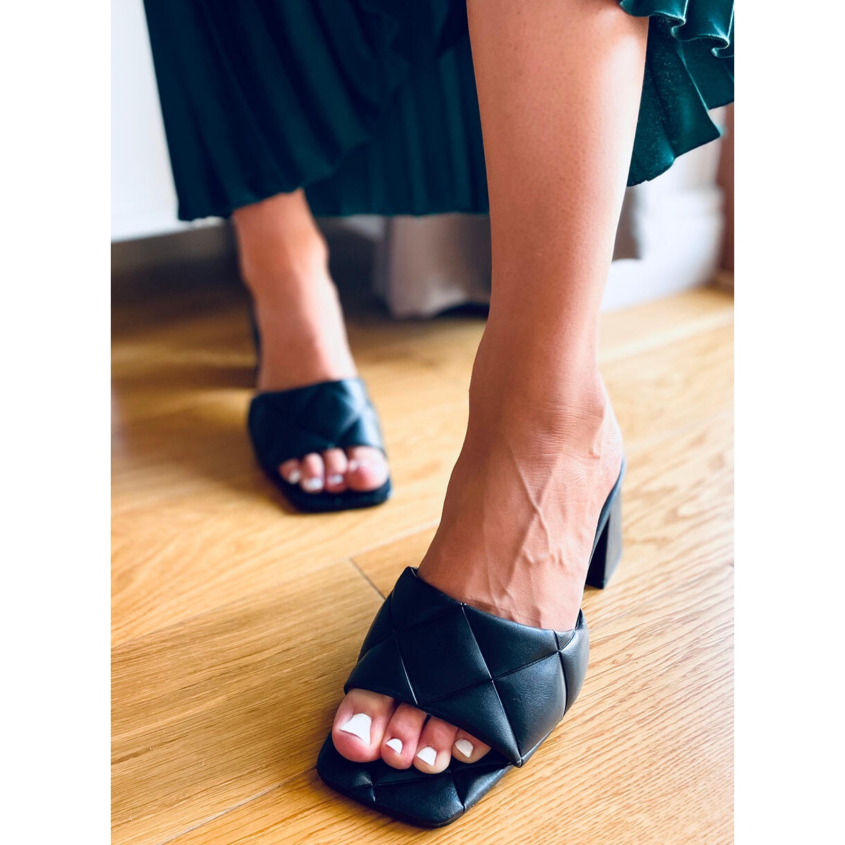 Descoperiți eleganța și confortul în șlapi Helen Black cu toc lat! Acești papuci negri de damă cu o înălțime de 7,5 cm sunt complementul perfect pentru orice stil, perfect atât pentru utilizarea de zi cu zi, cât și pentru ocazii speciale. Croiala lor la modă, pătrată și modelul matlasat atrăgător atrag atenția și adaugă clasă.