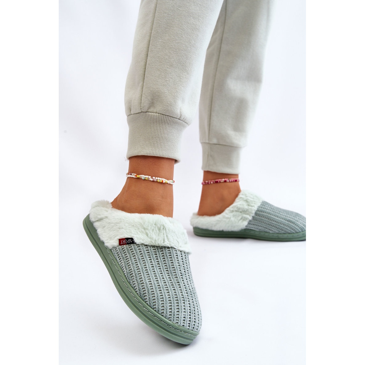 Detalii: PA1 Papuci izolați pentru femei, cu blană verde Leriss