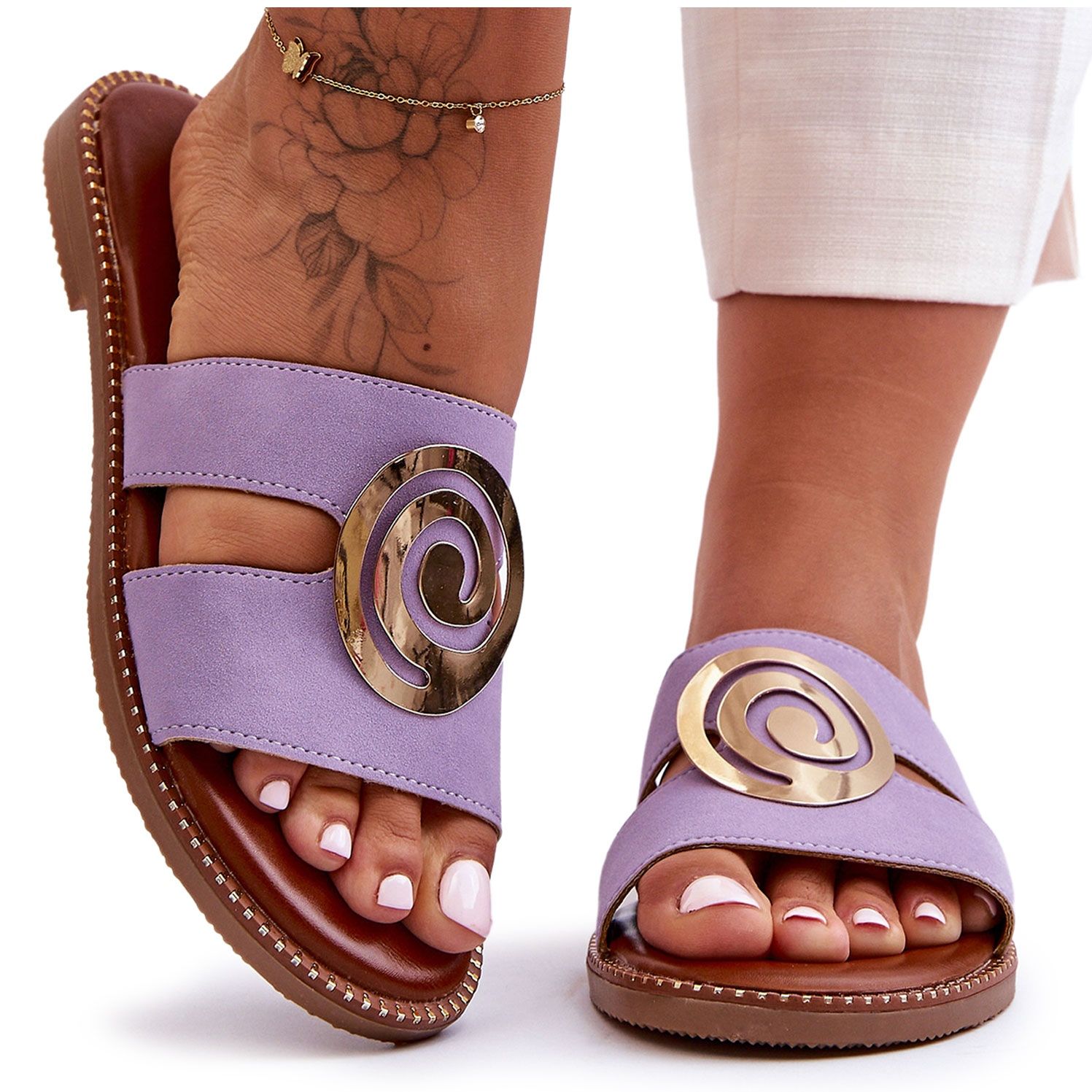 Inna marka Papuci la modă, cu oglindă, mov, respirație adâncă violet