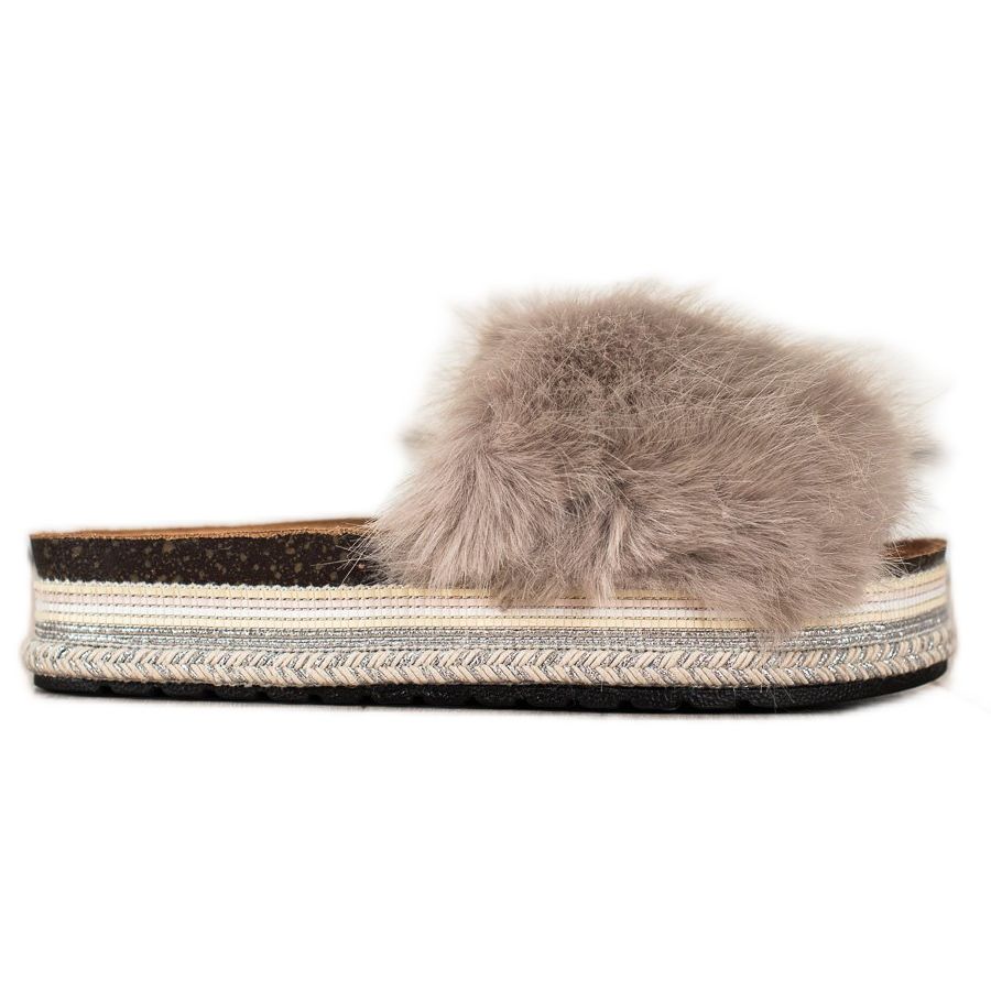 Datorită platformei de 4 centimetri, șlapii nu numai că adaugă eleganță, ci și alungesc optic picioarele. Talpa din material sintetic cu banda de rulare garanteaza stabilitate si confort in timpul mersului. În plus, lipsa degetelor și blana decorativă subtilă fac ca acești șlapi să fie stilați și confortabili.