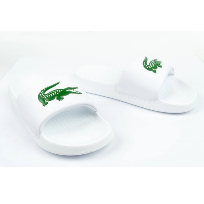 Șlapii Lacoste sunt albi, ceea ce îi face ușor de asortat cu diverse stiluri. Modelul de pantof nu are un deget de la picior, ceea ce afectează în plus confortul de utilizare. Înălțimea tocului este de 2,5 cm, ceea ce este soluția optimă pentru multe femei. Incaltamintea nu are ajustari, dar brantul este din plastic.