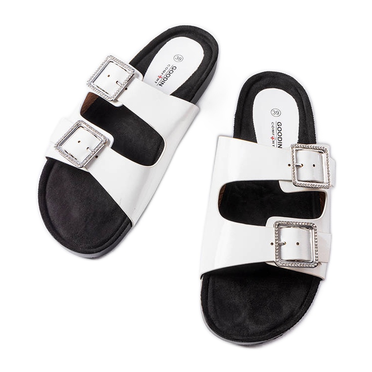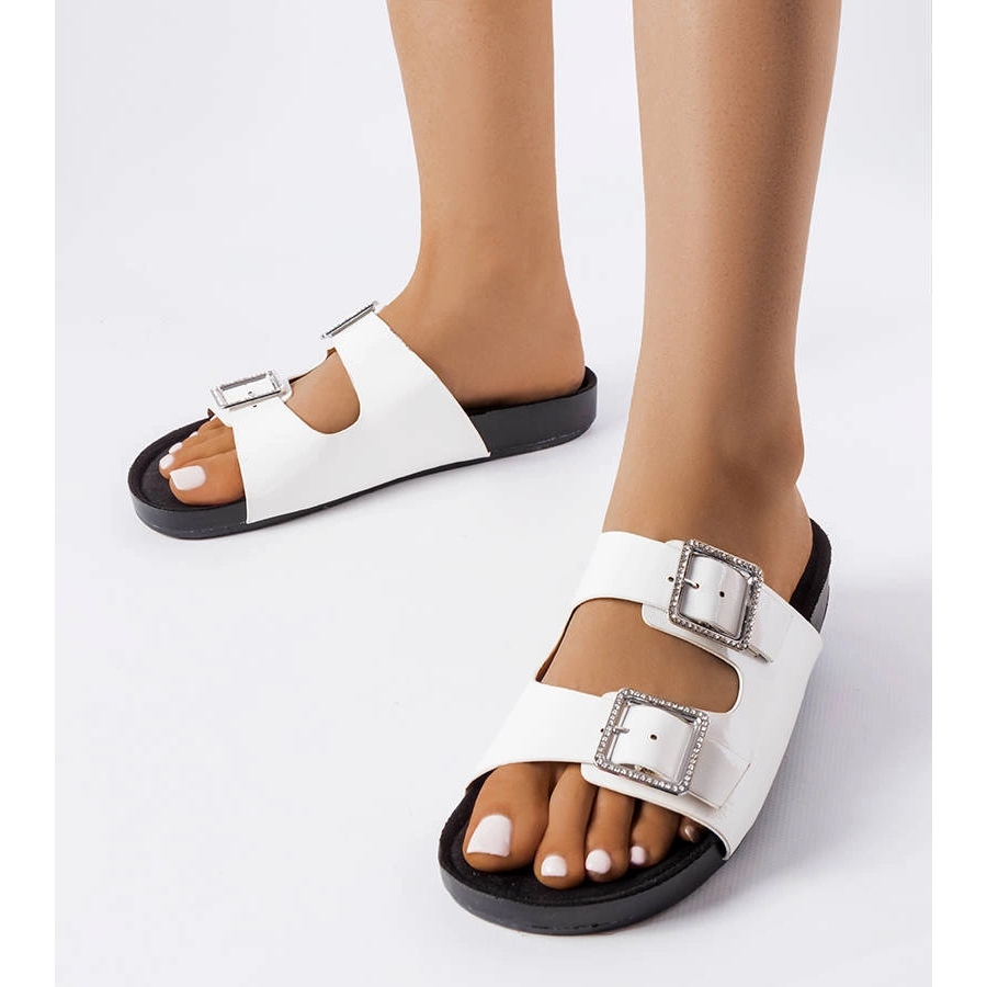 Detalii: Papuci lacuiti alb cu catarame Norcross