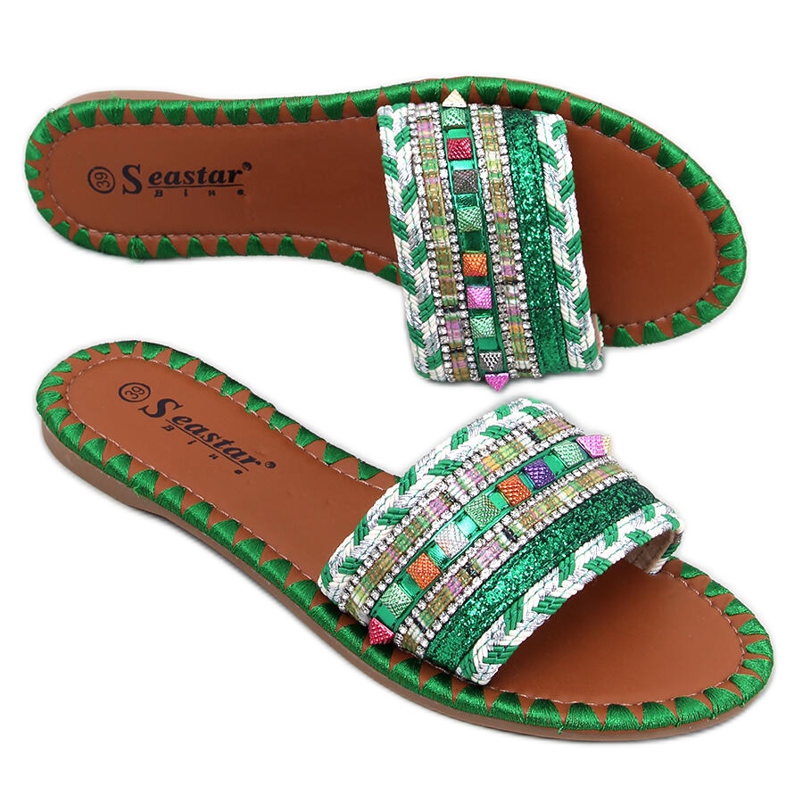 Vă prezentăm șlapi Marrakesh Morocco Green - perfecte pentru femeile care caută încălțăminte elegantă și confortabilă de zi cu zi! Acești șlapi unici cu talpă plată se caracterizează prin decorațiuni atrăgătoare, colorate, care cu siguranță vor atrage atenția și vor da aspectului tău de vară un caracter unic.
