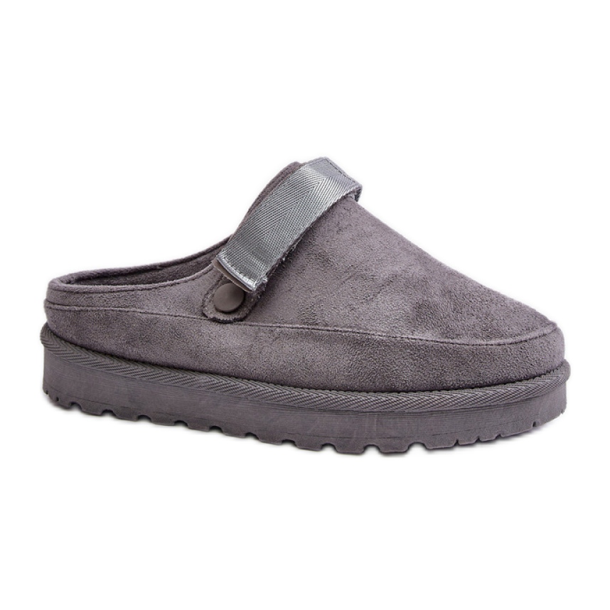 Flip-flops dama din piele intoarsa ecologica. Montat pe o platformă. Interiorul este izolat cu blana placuta, ceea ce asigura confort in zilele mai reci. În plus, au o curea mobilă cu închidere Velcro care stabilizează călcâiul și permite o potrivire perfectă. Perfecte pentru utilizarea de zi cu zi, combină stilul cu funcționalitatea.