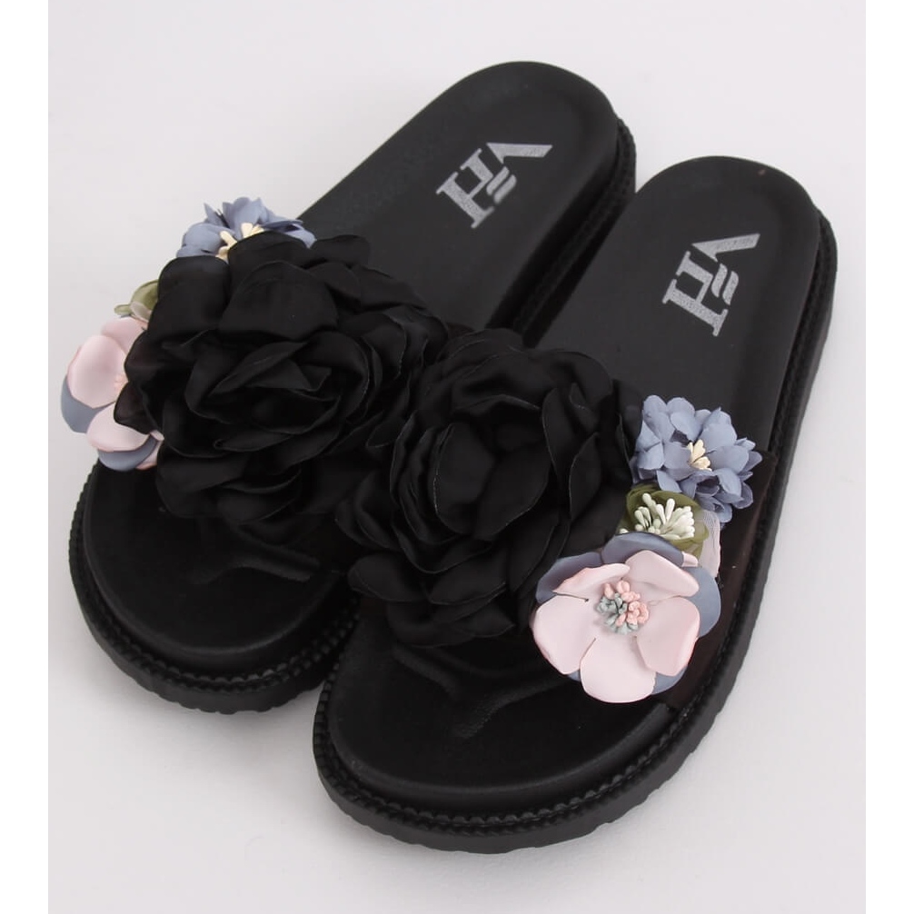 Inna marka Negru PT-109 Papuci negri cu talpă înaltă multicolor