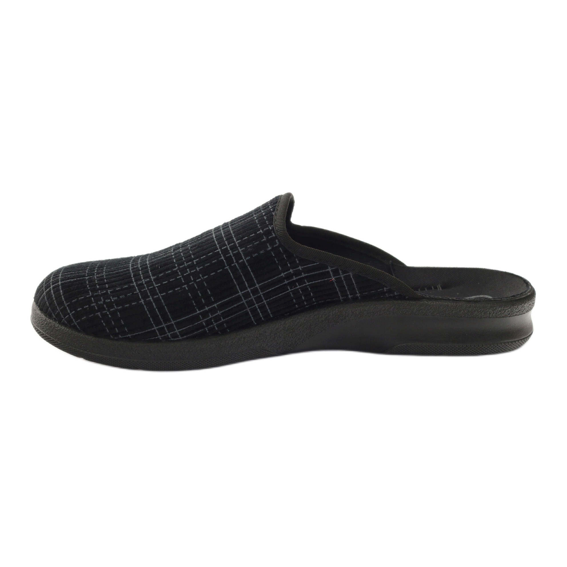 Modelul 548m003 se caracterizează printr-un model în carouri atractiv și materiale de înaltă calitate care asigură durabilitate și confort de utilizare. Talpa flexibilă, profilată, din termo-cauciuc, nu este doar ușoară, ci și anti-alunecare, ceea ce sporește suplimentar siguranța în timpul mersului. Vârfurile papucilor sunt largi și înalte, ceea ce facilitează libertatea de mișcare.